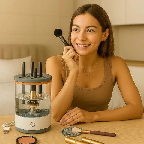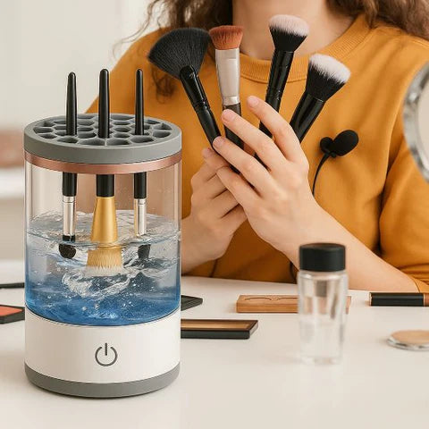 Olvida horas de limpieza manual. Brochas impecables en segundos, sin esfuerzo. Tecnología USB portátil que cuida tu inversión en maquillaje.
